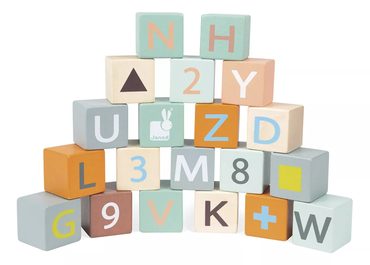 1 ANDADOR, 20 BLOCOS COM LETRAS ALFABÉTICAS, NÚMEROS E FORMAS BÁSICAS, 3 FILEIRAS E ÁBACO.