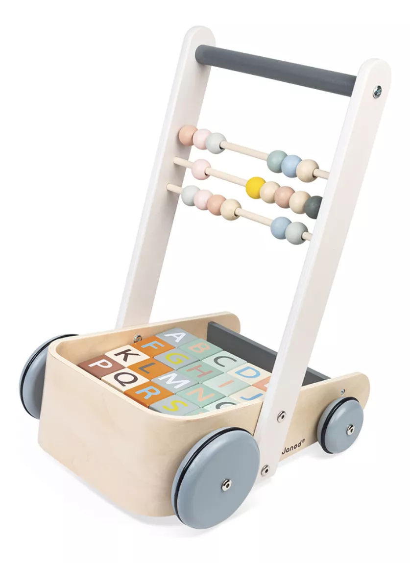 Este lindo andador é adequado para a aprendizagem da marcha para crianças a partir dos 12 meses. É equipado com um freio invisível e removível, para travar as rodas, e soltá-las gradativamente, assim você controla a velocidade do carrinho de madeira. UM BRINQUEDO DE MADEIRA MULTI-ATIVIDADE : o andados é um brinquedo clássico com 20 blocos de madeira ABC, números e formas. Para aprender a contar, o Buggy possui 3 ábacos em cores suaves e delicadas. O andador foi projetado para garantir a segurança das crianças e a tranquilidade dos pais. Possui um sistema anti-tombamento para garantir uma boa aderência e inspirar confiança. O carrinho é feito de madeira (compensado e cerejeira). É colorido com tintas à base de água. Dimensões embalagem: 13,9 x 11,6 x 17,5 polegadas.