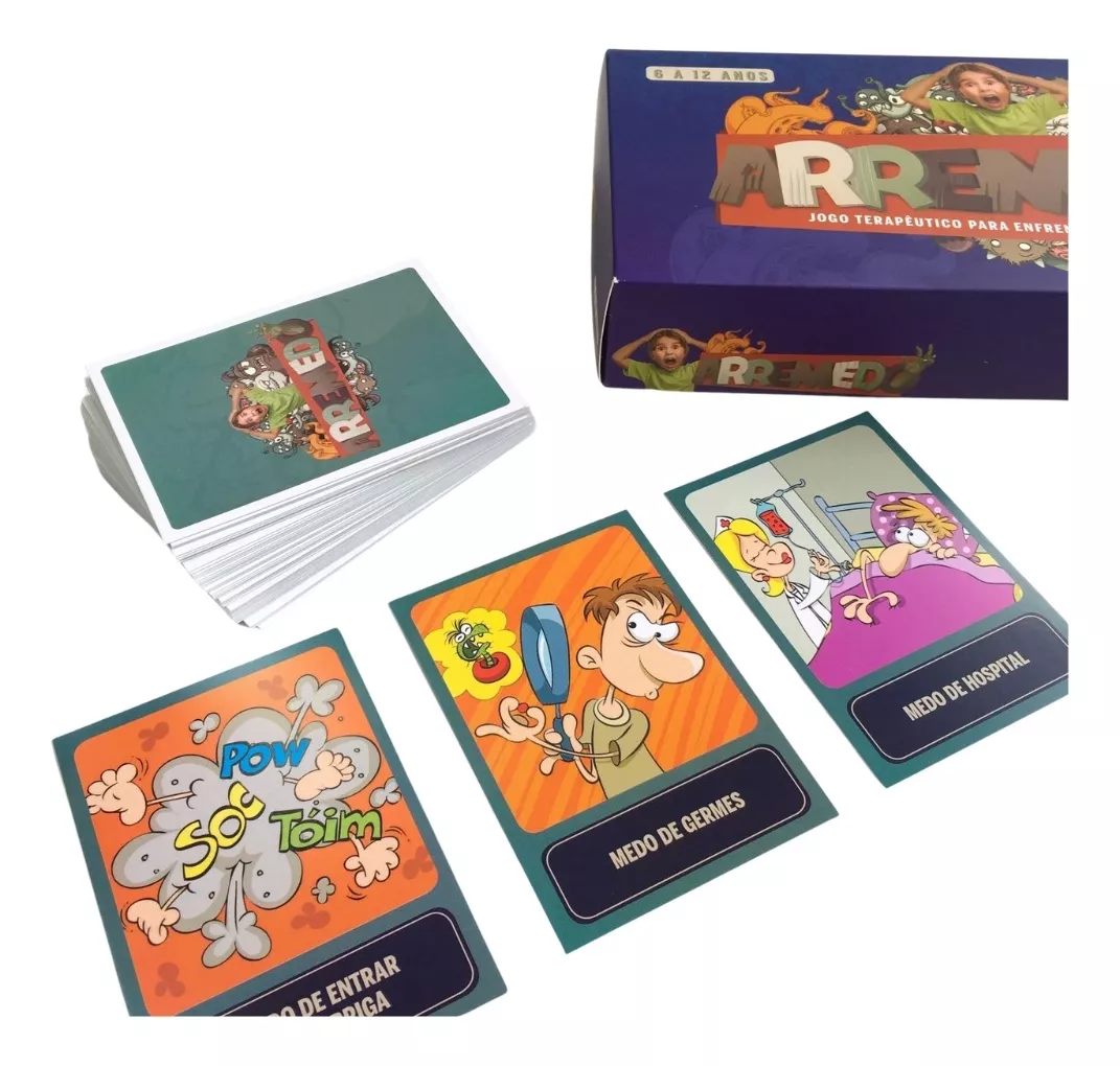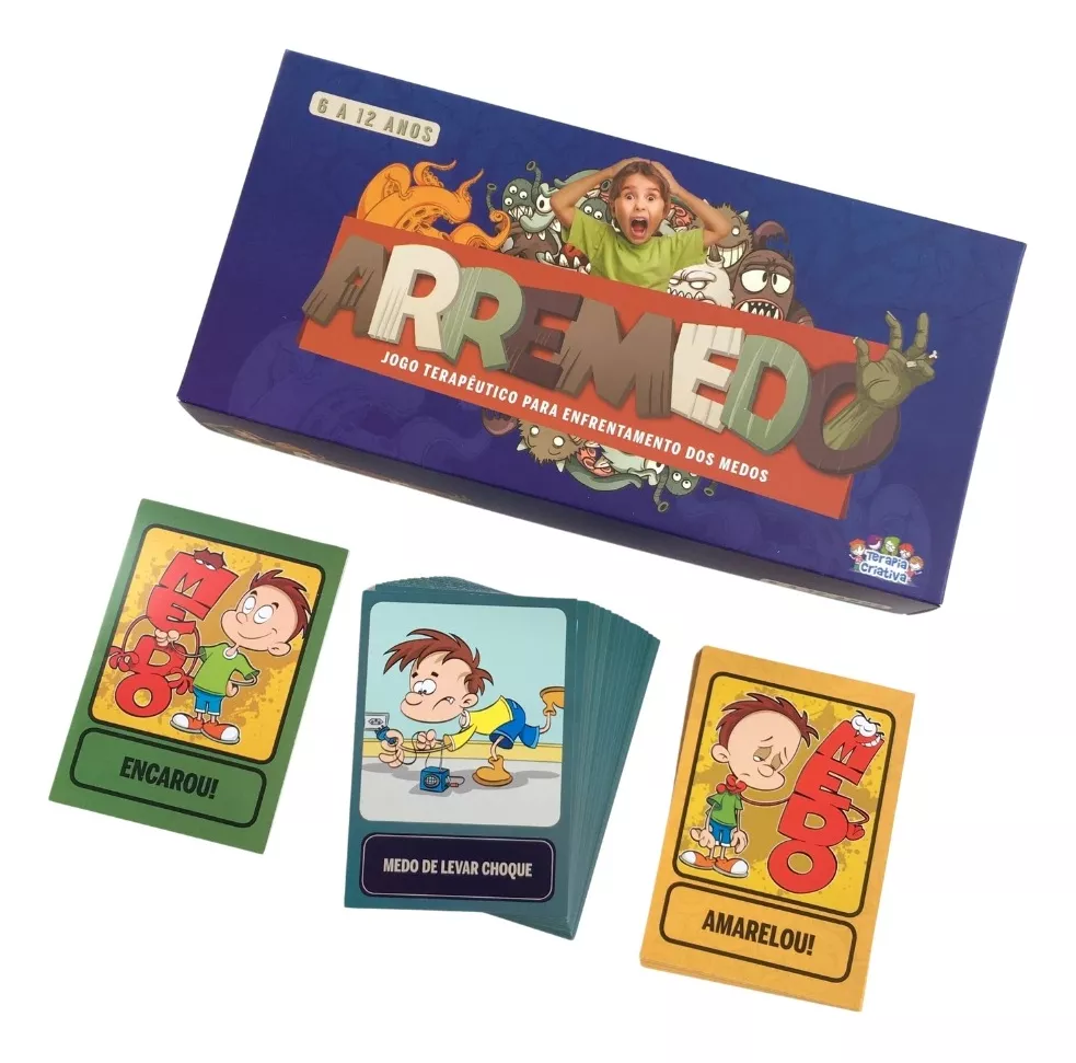 Arremedo é um jogo terapêutico para dessensibilizar as respostas fisiológicas de ansiedade/medo das crianças através da exposição lúdica aos eventos aversivos (os medos). Além das 64 cartas com os medos mais frequentes na infância, traz a metáfora do Encarou! ou Amarelou!