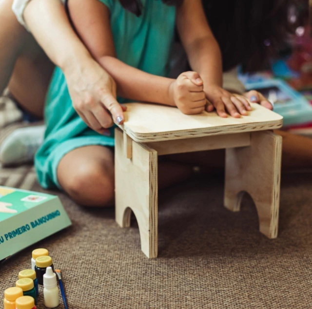 Por ser um banco de madeira maciça com tamanho apropriado para as crianças, elas poderão utilizá-lo não só para sentar mas também para terem acesso a locais altos podendo assim ter mais AUTONOMIA para fazer atividades do seu dia a dia como escovar os dentes sozinhas, ou mesmo ajudar a mamãe a cozinhar…
