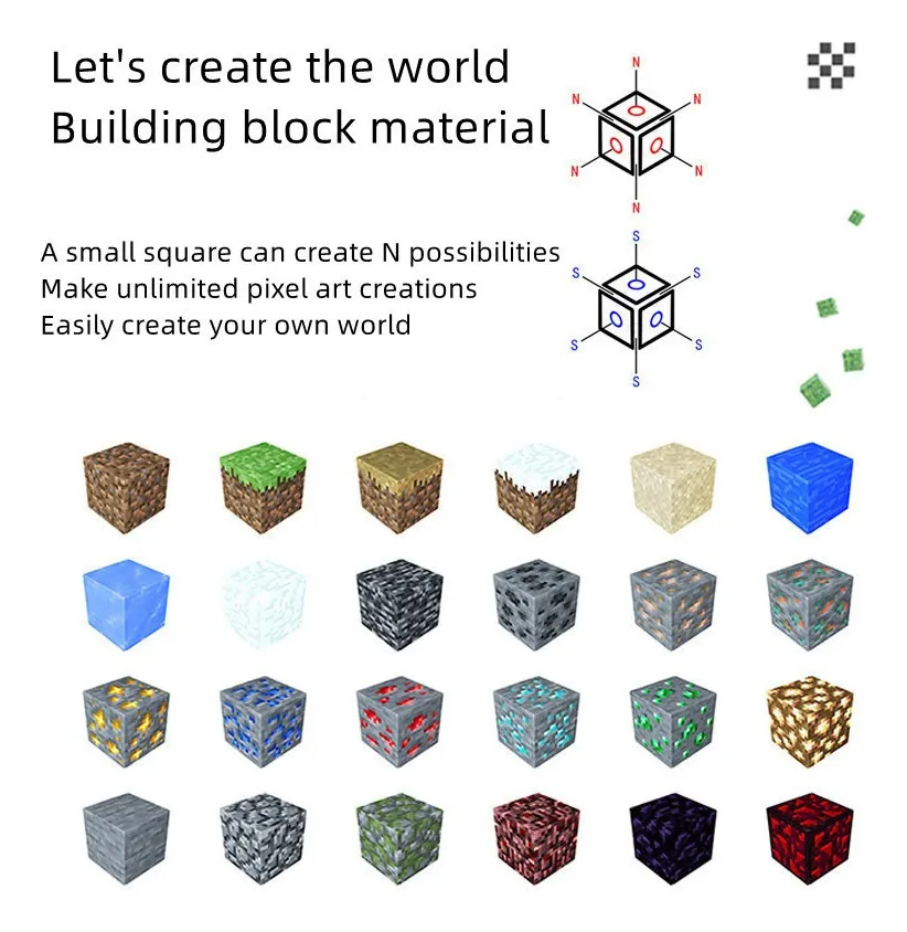 75 Blocos Magnéticos Sortidos Estilo Minecraft Magnetic Toys