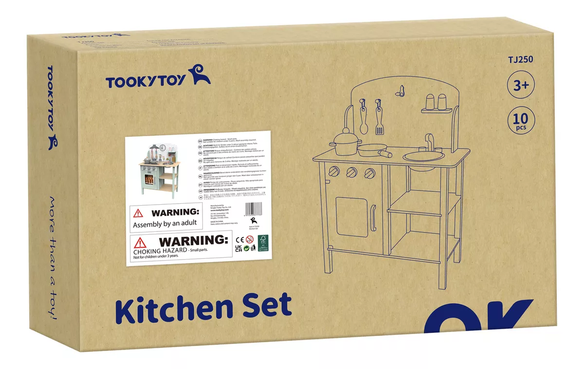 Este brinquedo com tudo incluído possui forno, fogão e pia, permitindo que as crianças se envolvam em aventuras culinárias imaginativas. O conjunto vem completo com utensílios de cozinha de madeira e plástico, uma panela e uma frigideira, proporcionando aos chefs mirins tudo o que precisam para preparar deliciosas refeições de faz de conta.