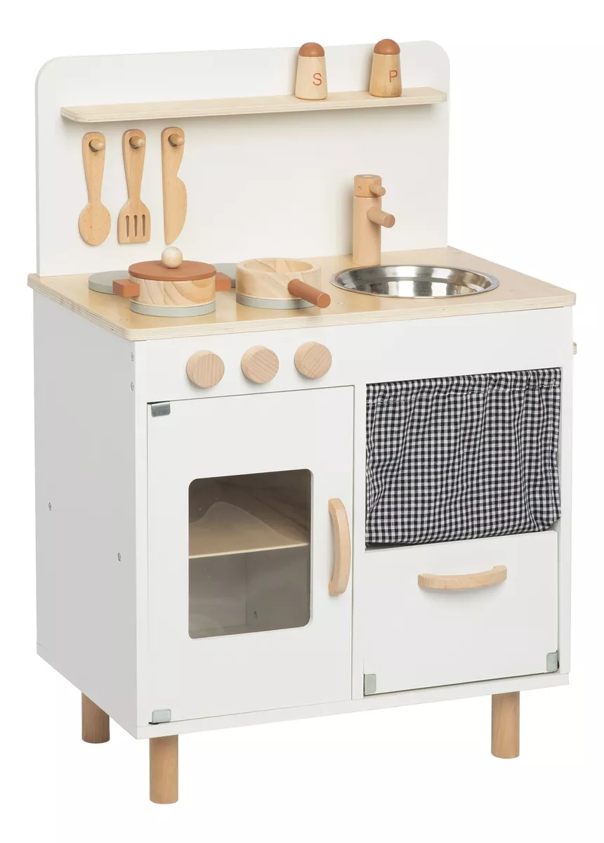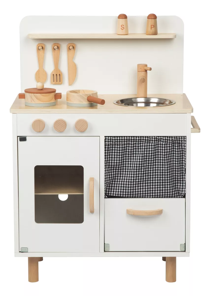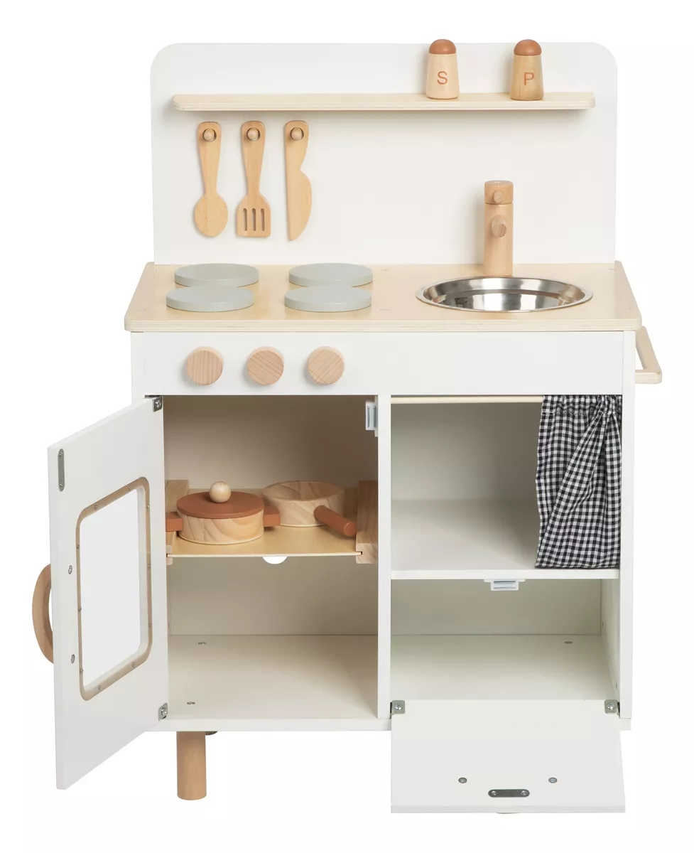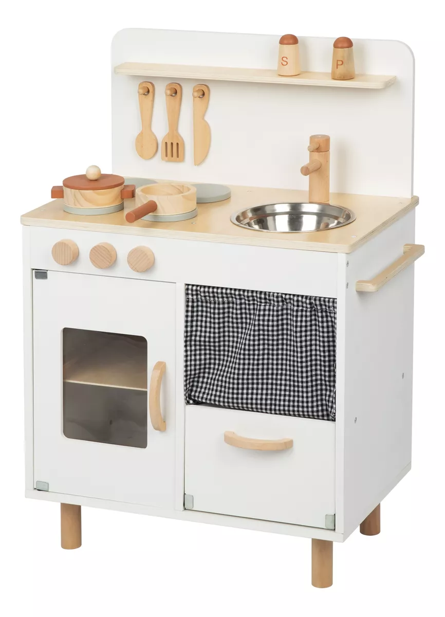 Vamos cozinhar juntos! A cozinha infantil de cor creme TJ548 da Tooky Toy pode ajudar as crianças a evitar os perigos das cozinhas reais e proporcionar às crianças uma experiência culinária realista. Em comparação com as cozinhas infantis de plástico, este conjunto de cozinha apresenta uma estrutura mais estável. As crianças podem fazer dramatizações, através da comunicação verbal e física para melhorar