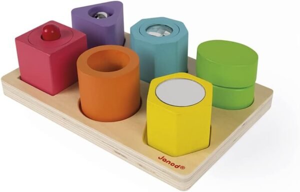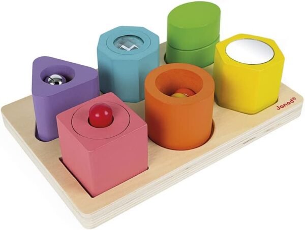 Um verdadeiro parque de diversões para bebês! Este quebra-cabeça sensorial com cores vibrantes, para bebês a partir de 1 ano, permitirá que as crianças identifiquem diferentes cores e formas. Cada cubo possui uma funcionalidade diferente para estimular o bebê ainda mais: chocalho, caleidoscópio, barulhinho, chocalho, apito e espelho. Todos os seus sentidos serão estimulados e ele passará tempo em cada cubo brincando e descobrindo sua funcionalidade em seu próprio ritmo e autonomia. Divirta-se ao ver as reações do seu filho diante de todas as possibilidades que cada cubo oferece! Optamos por usar tinta à base de água porque crianças menores de 3 anos frequentemente colocam seus brinquedos na boca.