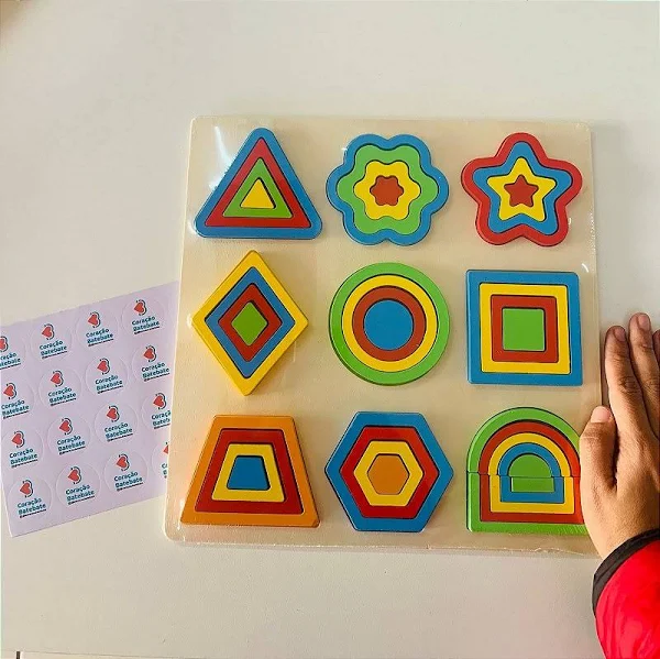 Peças de quebra-cabeça geométricas multicoloridas, atraindo a atenção e o interesse das crianças em brincar, treinar concentração, aprender cores, matemática.