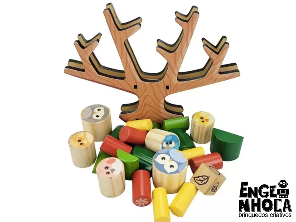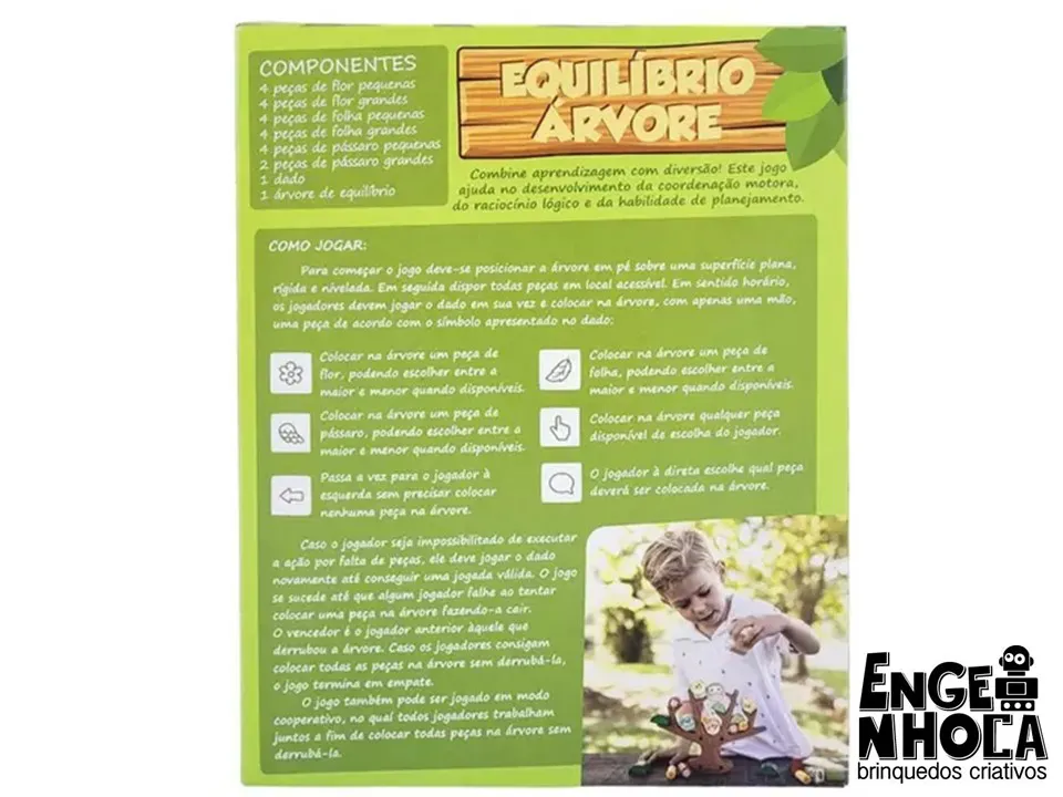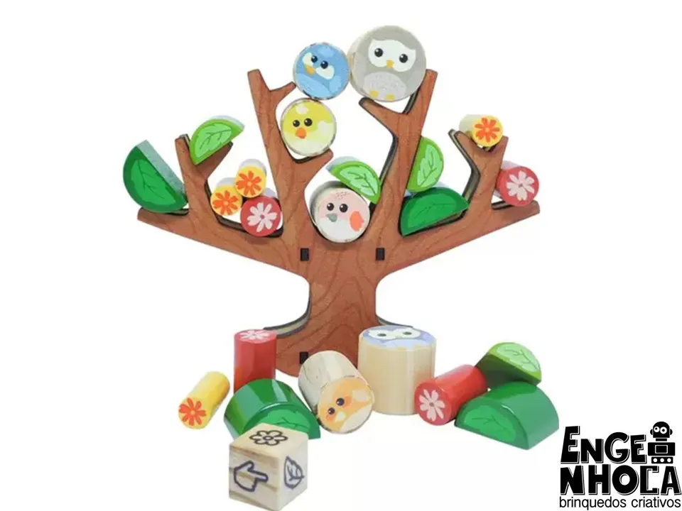 Equilíbrio Árvore é um jogo que trabalha coordenação motora, raciocínio lógico e concentração.