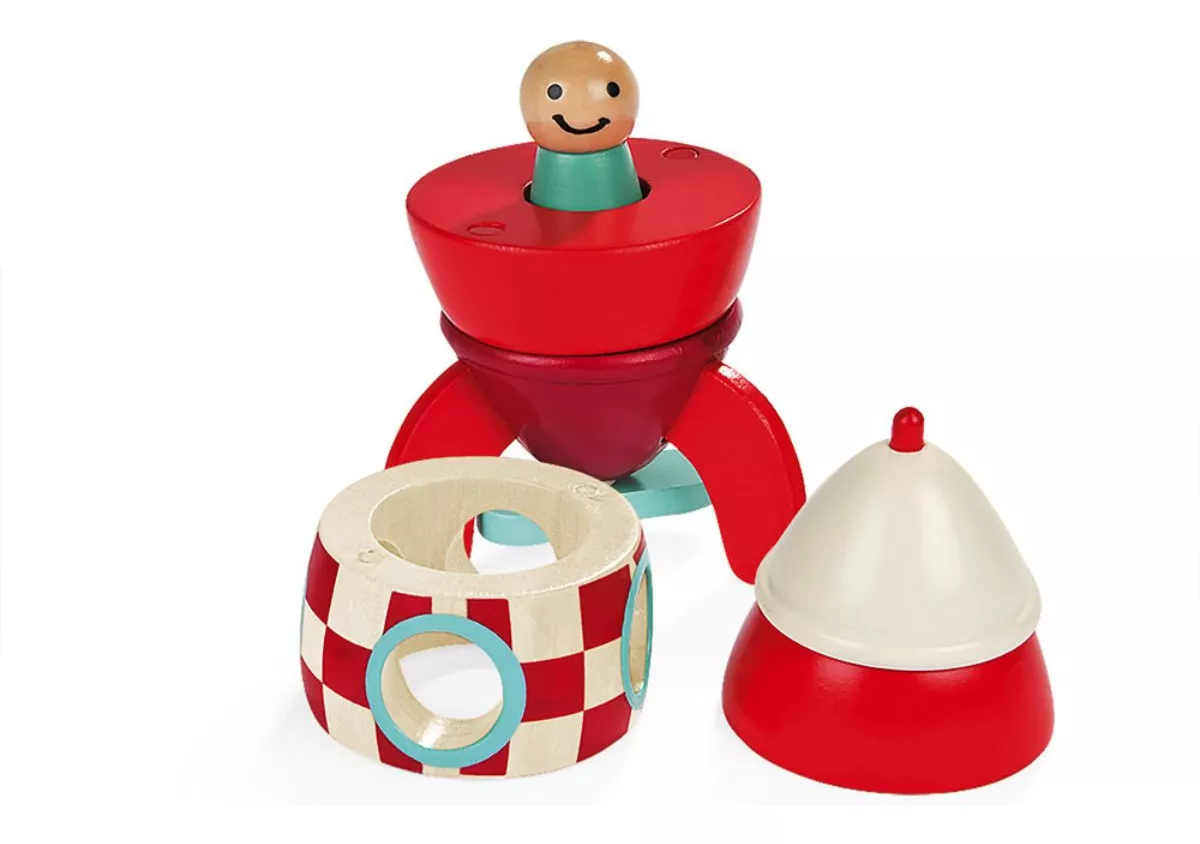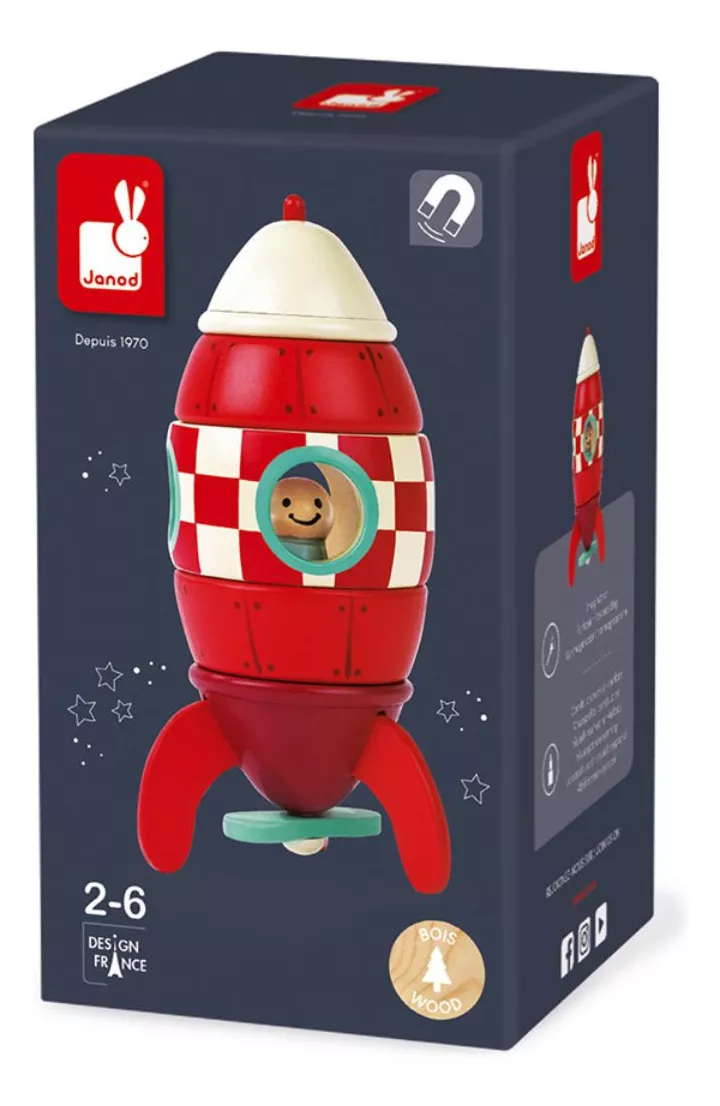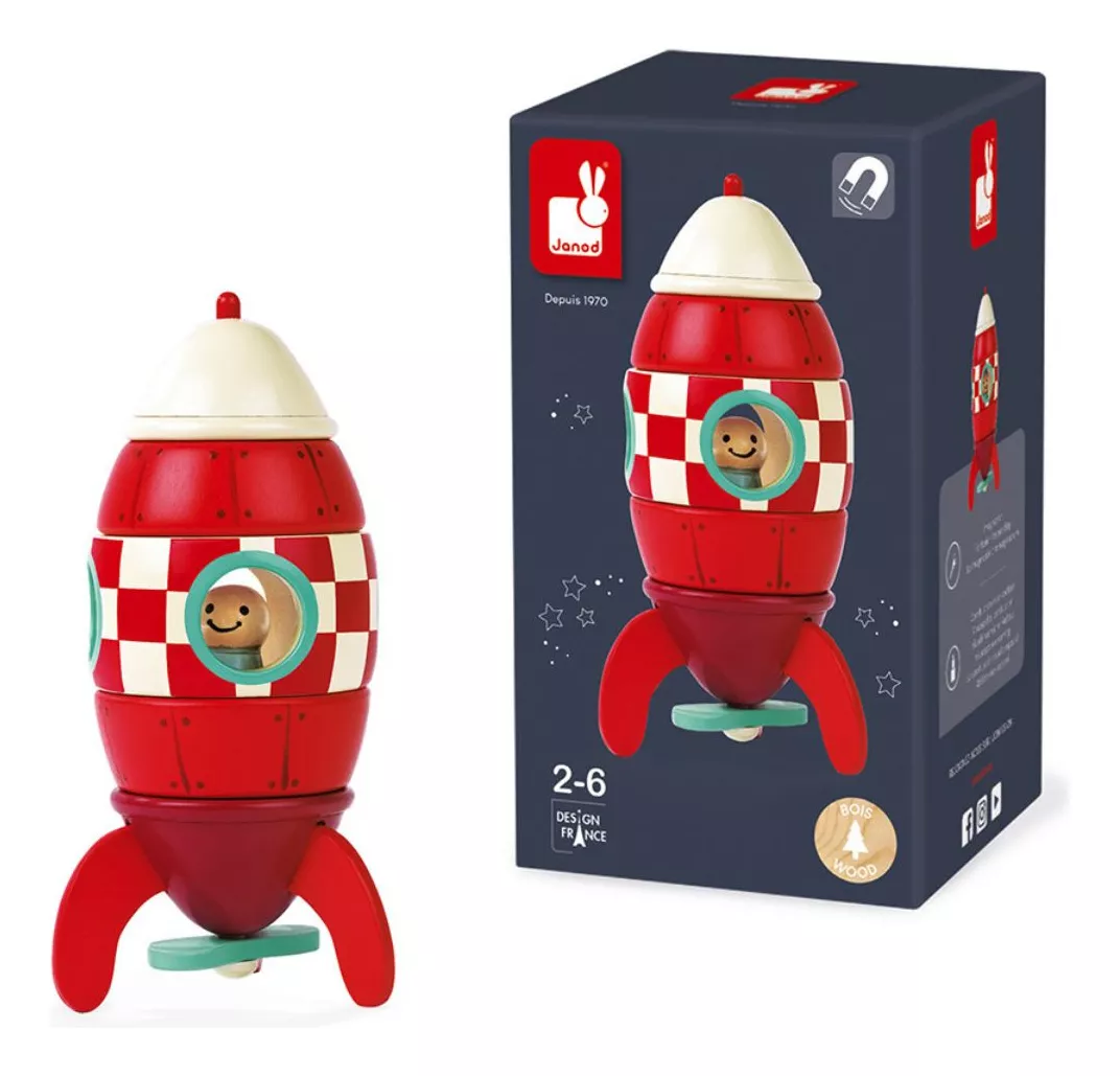 Não perca tempo! Adquira agora o Foguete Magnético Vermelho, confeccionado em madeira de faia e cerejeira de alta qualidade.