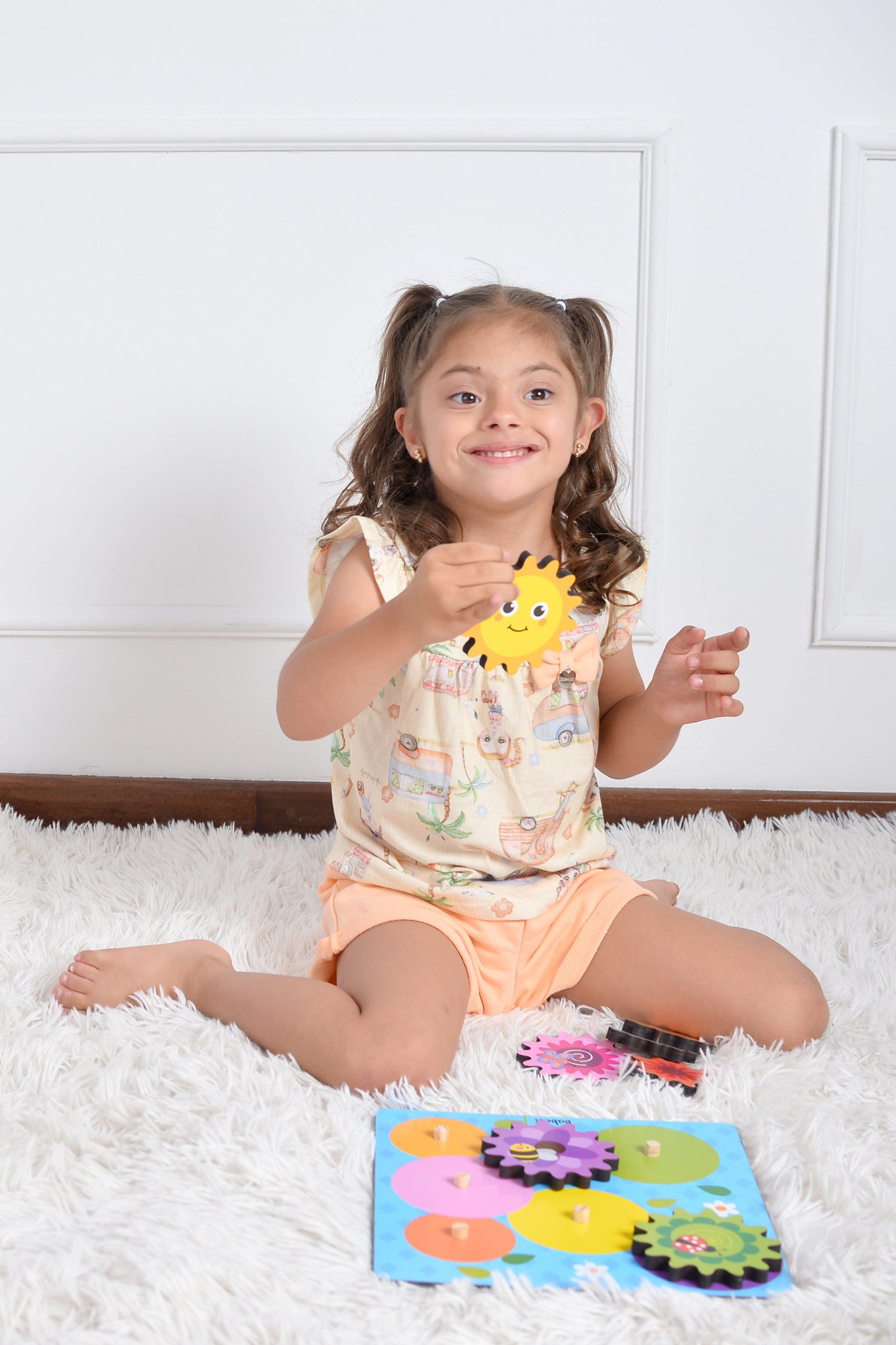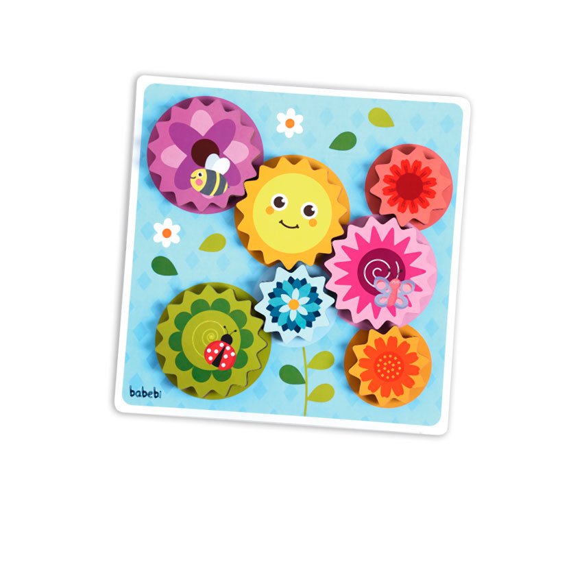 Um encantador jardim de engrenagens que trabalha o desenvolvimento cognitivo, coordenação motora fina, atenção e reconhecimento das cores.