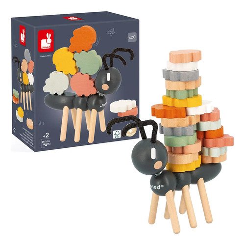 Com uma formiga grande de madeira e feltro e 20 folhas de madeira coloridas, as regras são simples e adequadas para os mais pequenos. As crianças podem jogar sozinhas e tentar bater seu recorde pessoal ou se juntar à família: quem deixar cair a pilha perde!