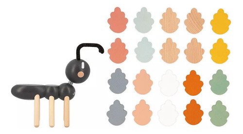 O objetivo é equilibrar o maior número possível de folhas nas costas da formiga sem deixá-las cair. Este jogo de tabuleiro em madeira favorece a concentração e a atenção aos detalhes, proporcionando momentos divertidos em família.