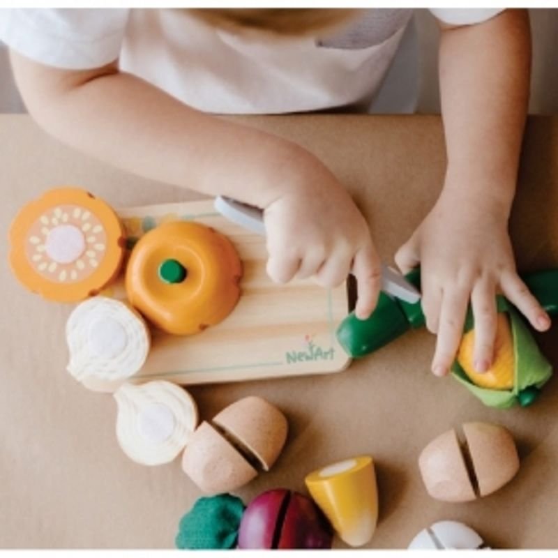 Estimule a criatividade das crianças ao brincar de cortar os legumes e preparar pratos imaginários.