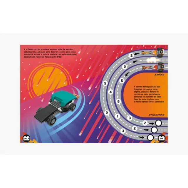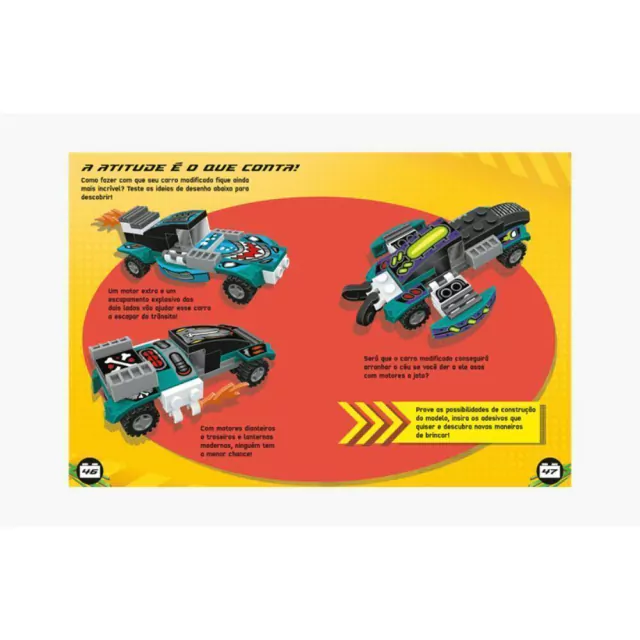 Construa carros de corrida superpoderosos com os blocos LEGO® seguindo as instruções que vêm aqui dentro! Escolha entre três modelos disponíveis e crie uma máquina veloz para arrasar na performance. Depois, use a imaginação para customizar seu carro com adesivos feitos especialmente para isso! Acelere pelas páginas repletas de atividades, imagens interessantes, desenhos para colorir, desafios com adesivos e muito mais! Pronto para o replay? Dê marcha a ré para dar uma volta com outro carro usando mais de 10 novas configurações e consiga quilometragem extra com os adesivos reutilizáveis!