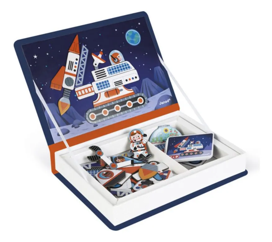 Com o livro magnético Viagem ao Cosmo, seus pequenos exploradores de 3 anos ou mais podem desvendar os mistérios do universo! Com 70 peças, incluindo 52 ímãs e 18 cartões, este jogo traz a diversão intergaláctica diretamente para sua casa.