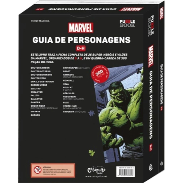 Cada livro inclui todos detalhes de 25 heróis e vilões da Marvel e um quebra-cabeça de 300 peças,