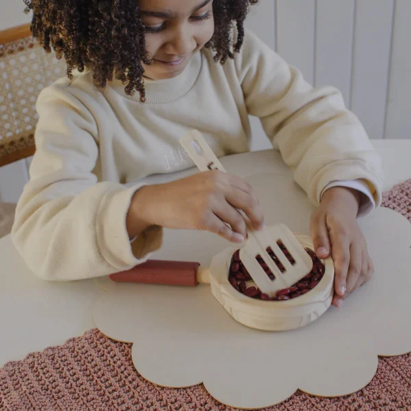 Um futuro chef pode crescer e prosperar na cozinha com esse conjunto básico de culinária! Composto por frigideira e espátula, inspira a narrativa imaginativa, o jogo imitativo e a criatividade na medida em que a criança brinca de praticar habilidades culinárias básicas. Possuem design contemporâneo, a qualidade que a madeira maciça oferece e uma variedade de cores, o suficiente para fazer você se apaixonar e brincar de comidinha com toda a família. Conheça também outros brinquedos de cozinha da Lume: Panela e colher de pau; Prato, talheres e copo; e a Caixa de frutas, legumes e verduras.