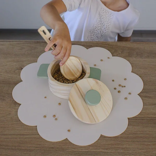 Com a panela e a colher de pau, a criança utilizará a imaginação e a criatividade, reproduzindo atividades do cotidiano ao brincar de preparar as mais diversas refeições. Possuem design contemporâneo, a qualidade que a madeira maciça oferece e uma variedade de cores, o suficiente para fazer você se apaixonar e brincar de comidinha com toda a família. Conheça também outros brinquedos de cozinha da Lume: Frigideira e espátula; Prato, talheres e copo; e a Caixa de frutas, legumes e verduras.