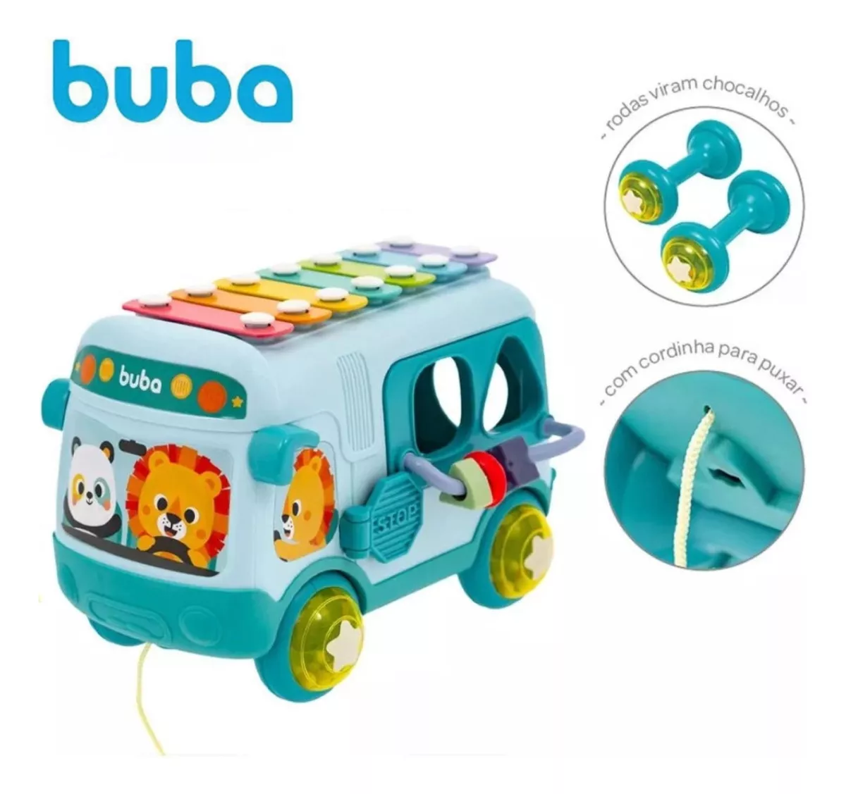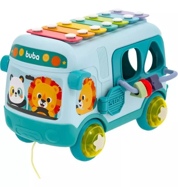 O Brinquedo Ônibus de Atividades da Buba proporciona diversão em cada parada para crianças a partir de 12 meses! Com este produto, seu pequeno pode simular viagens na companhia de personagens super fofos, encaixar peças nas janelas de diversos formatos e descobrir novos brinquedos escondidos. As rodinhas com chocalhos divertidos e o xilofone musical no teto estimulam a criatividade e o desenvolvimento sensorial das crianças.