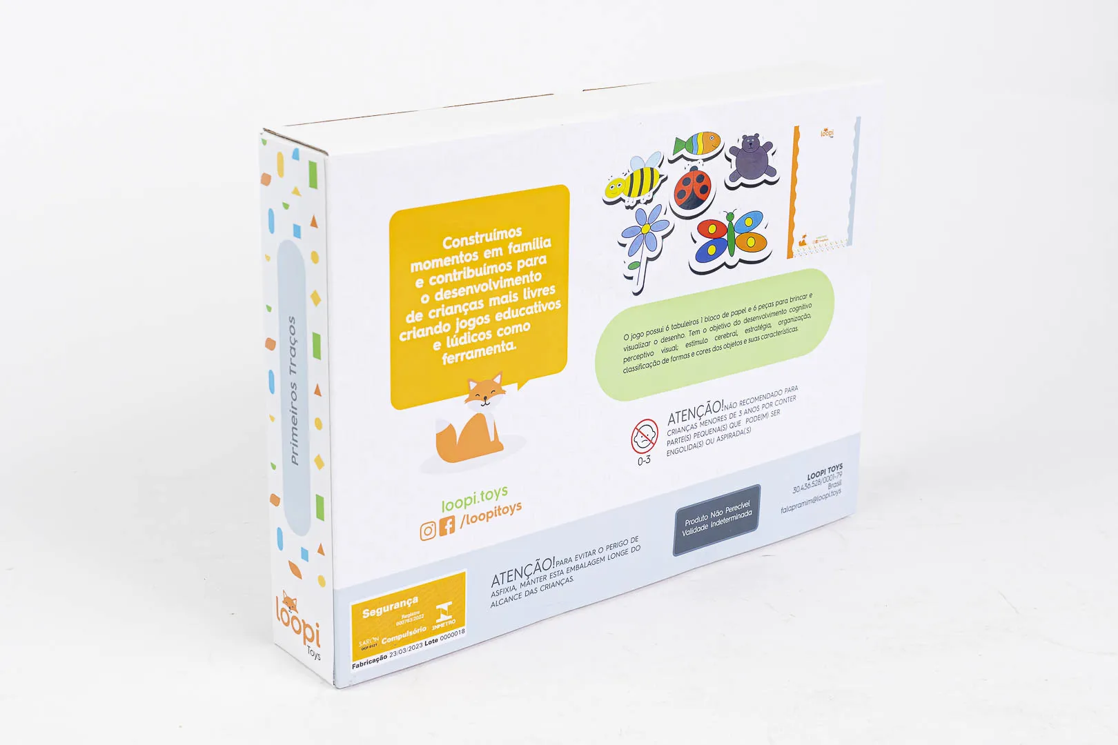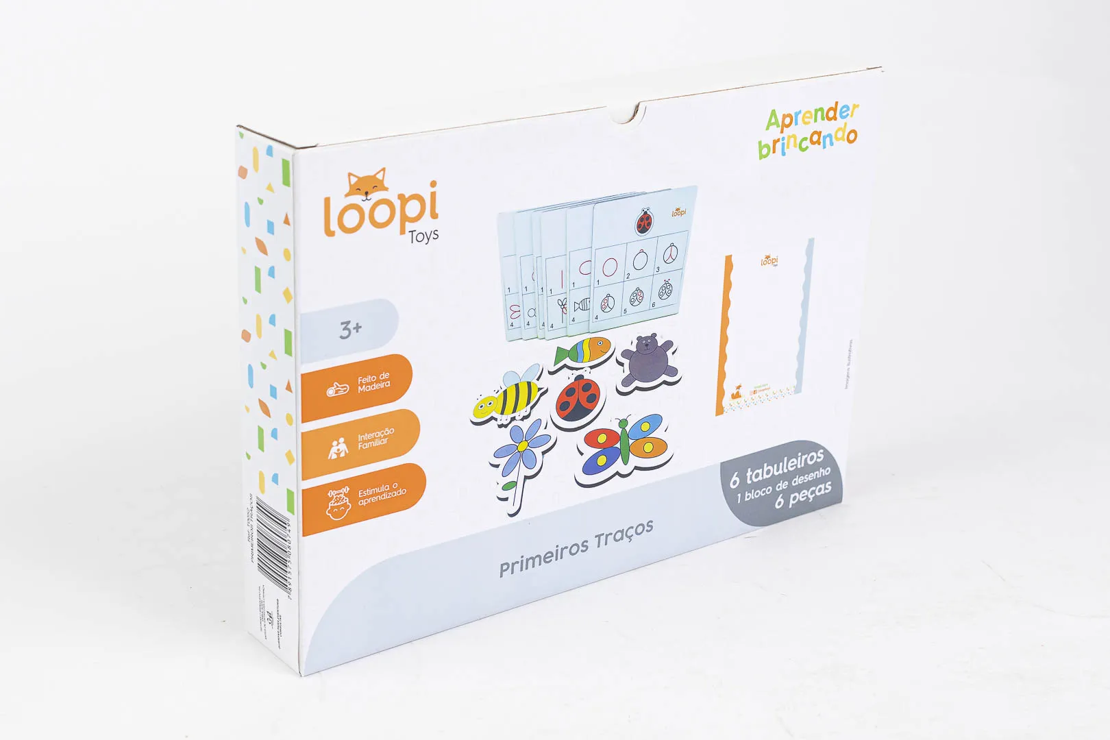 Este recurso vem com 6 tabuleiros + 6 objetos em madeira para a criança brincar e visualizar o desenho + um bloco de desenhos