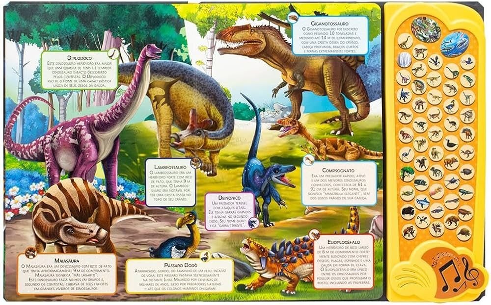 Livro sonoro com sons realistas de dinossauros