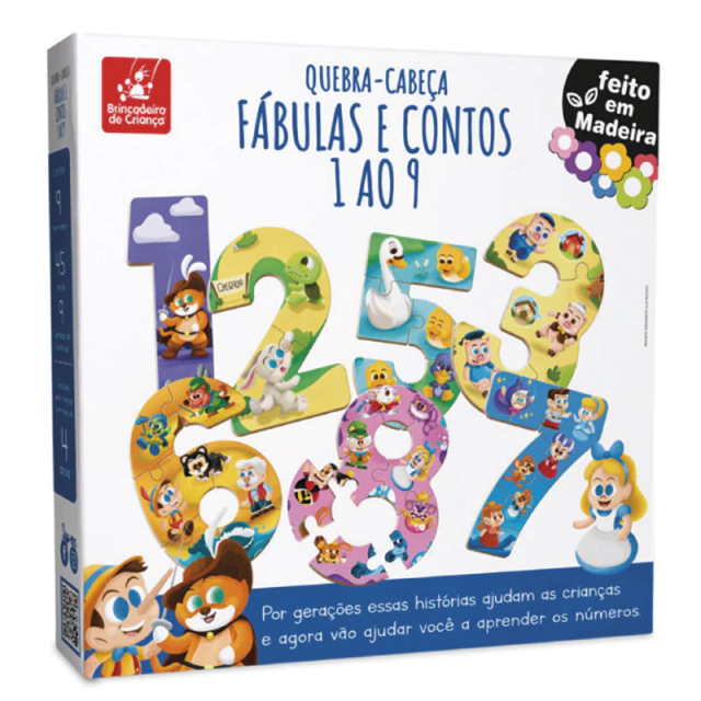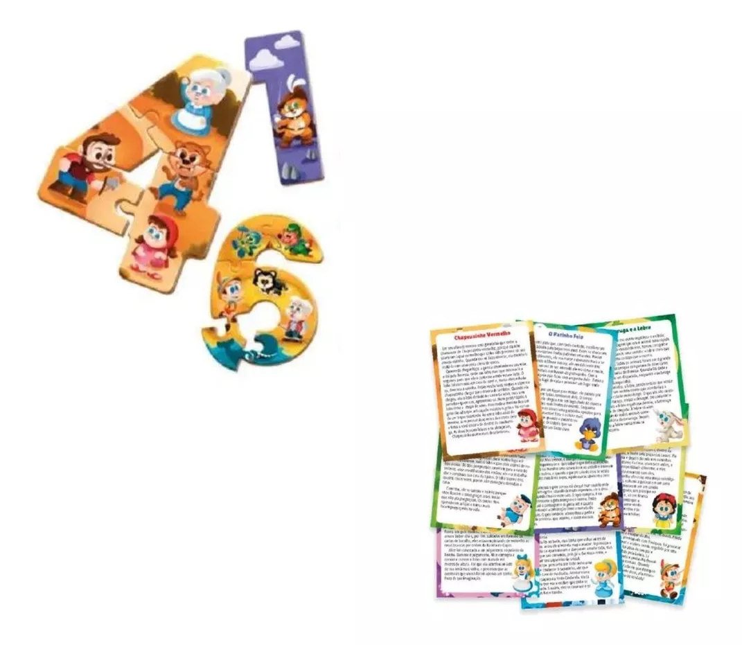 – Contém: 9 quebra-cabeças com 45 peças em MDF e 9 contos de personagens